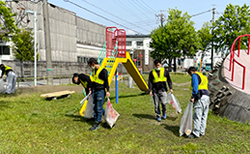 本社周辺の公園のゴミ拾い等のボランティア清掃活動など。