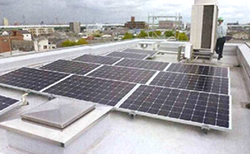 屋上にソーラー発電設備を設置し蓄電池設備も置いています。