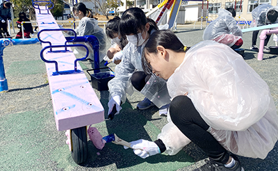 刷毛の使い方もとても上手です。お友達同士、協力しながら塗装してくれました。