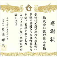 コロナ感染対策に対する寄付にて(寄付金及び防護服を寄付しました)名古屋市及び名古屋市民病院から感謝状をいただきました。