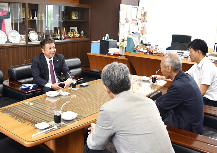 写真は野田学長とお会いしたときの歓談風景です。