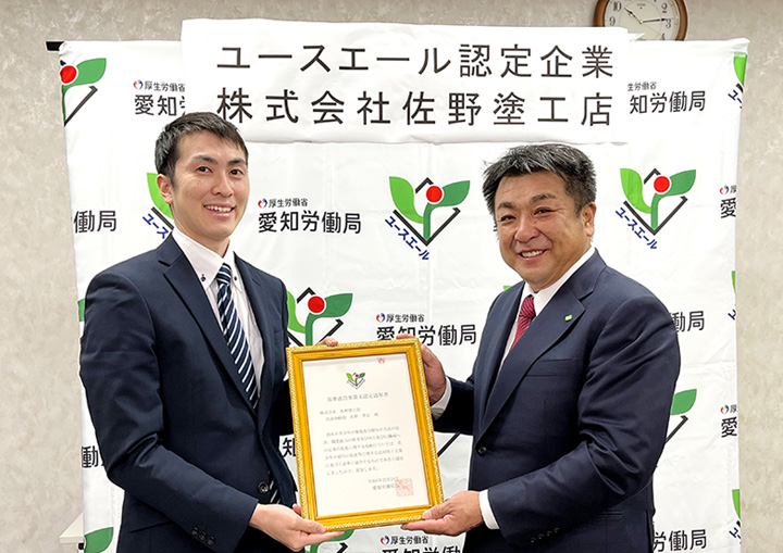 佐野塗工店では、若手社員の人材育成に取り組んでおり、この度「ユースエール認定企業(*)」として令和6年12月24日認定され、本日いただき授与式に参加いたしました。